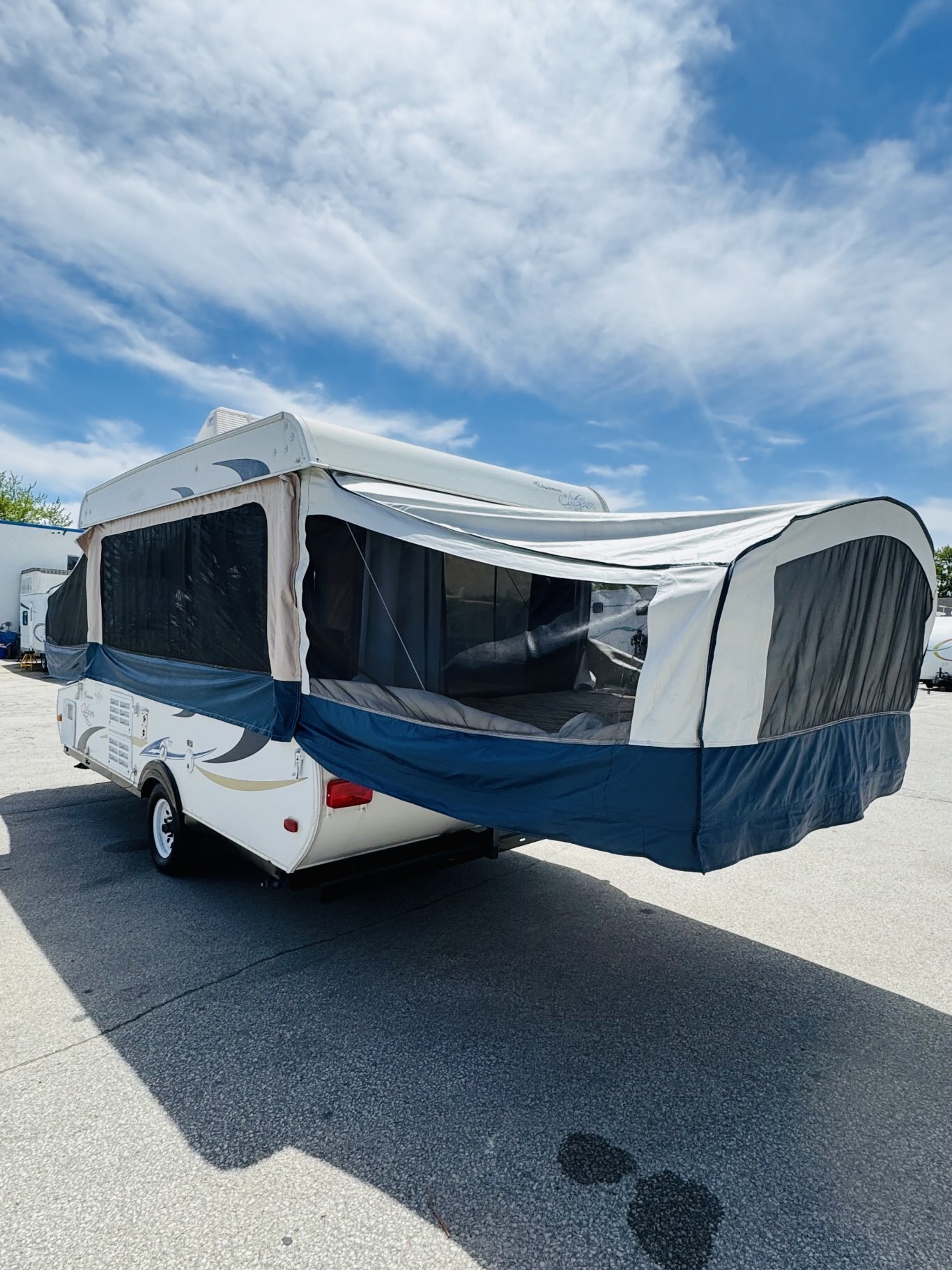 This 2012 Coachmen M-127ST is a clean, easy-to-tow pop-up trailer that expands to give you tons of space while still being compact and lightweight for travel and storage.